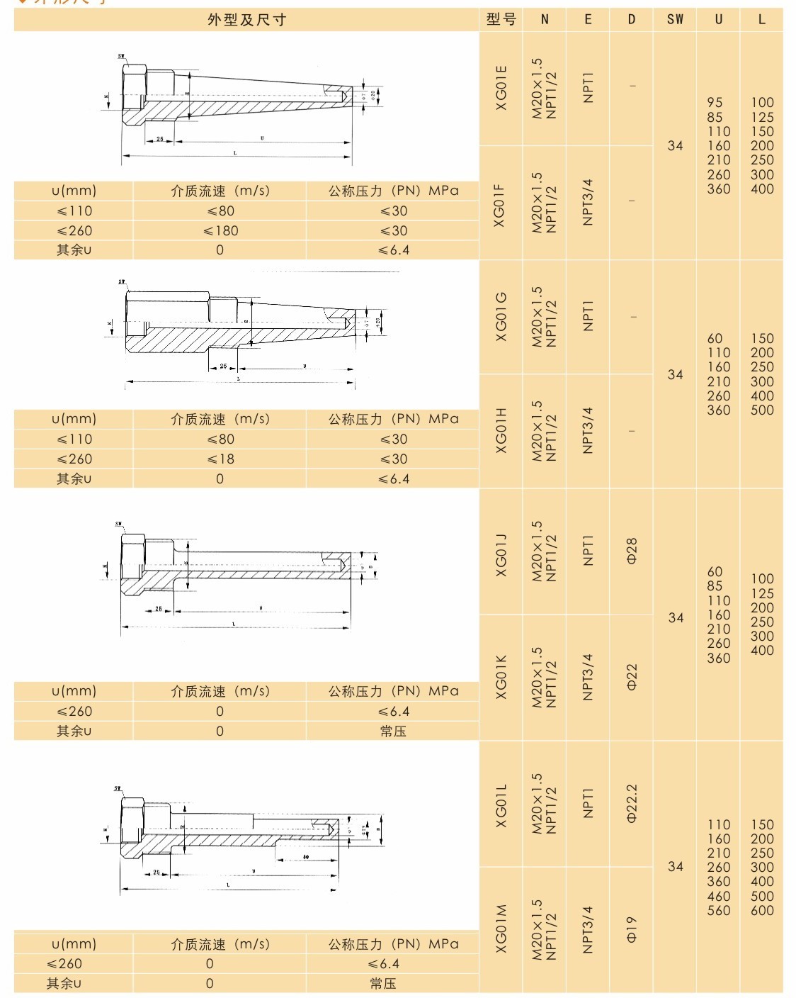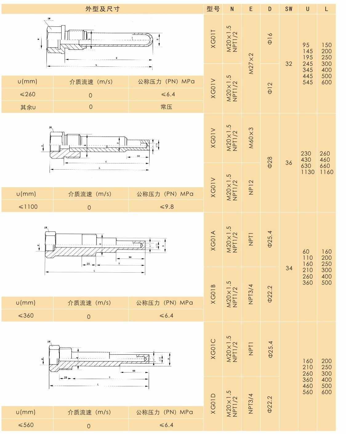 公称压力:一般是指在常温下,保护管所能承受的静态外压而不破裂。允许工作压力不仅与保护管材料,直径,壁厚有关,且与其结构形式,安装方法及被测介质的流速,种类有关。