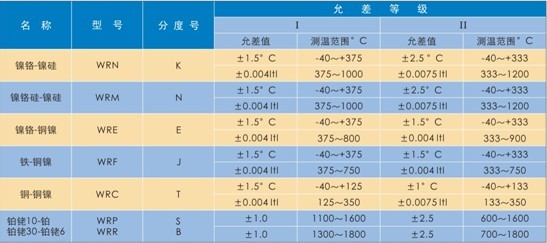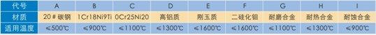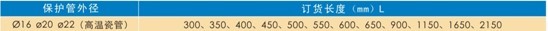 保护管材质及适应温度范围: