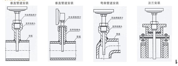 双金属温度计是基于绕制成环性弯曲状的双金属片组成。一端受热膨胀时,带动仪表指针旋转,显示出所应的温度值。它是一种测量中低温度的现场检测仪表。可以直接测量各种生产过程中的-80+500℃范围内液体蒸汽和气体介质温度。其特点是显示直观方便;安全可靠,使用寿命长;抽芯式温度计可不停机短时间维护或更换机芯;品种齐全,适应于各种现场安装的需要。
